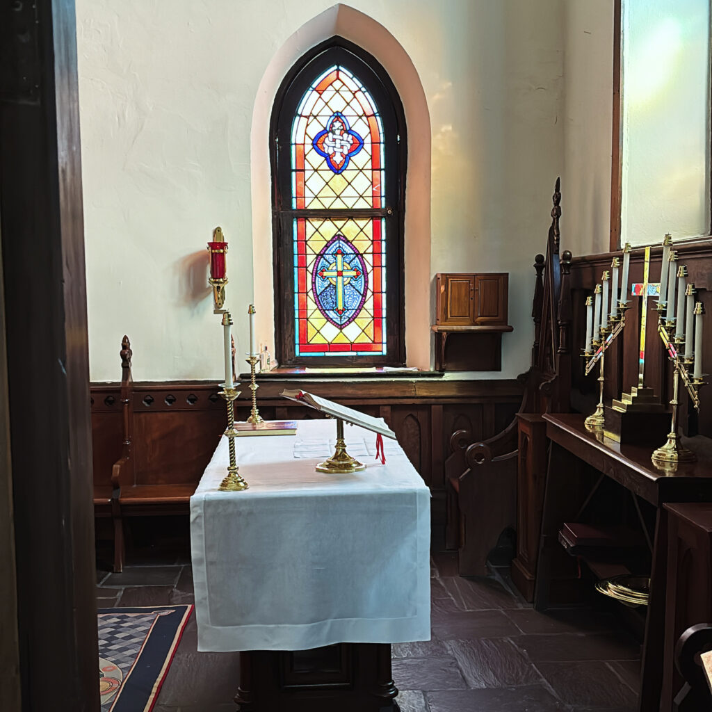 Getting the altar ready for the Wednesday morning service